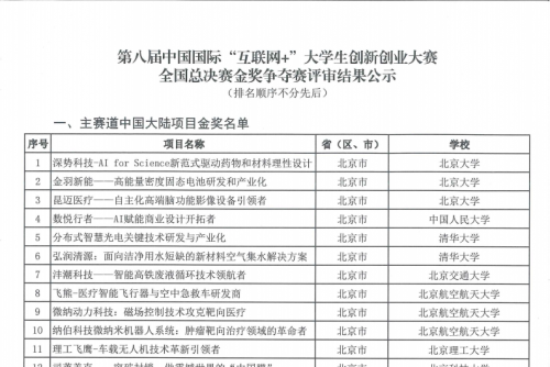 第八届中国国际“互联网+”总决赛线上赛事比赛结果