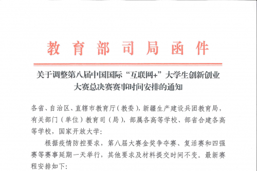 关于调整第八届中国国际“互联网+”总决赛赛事时间安排